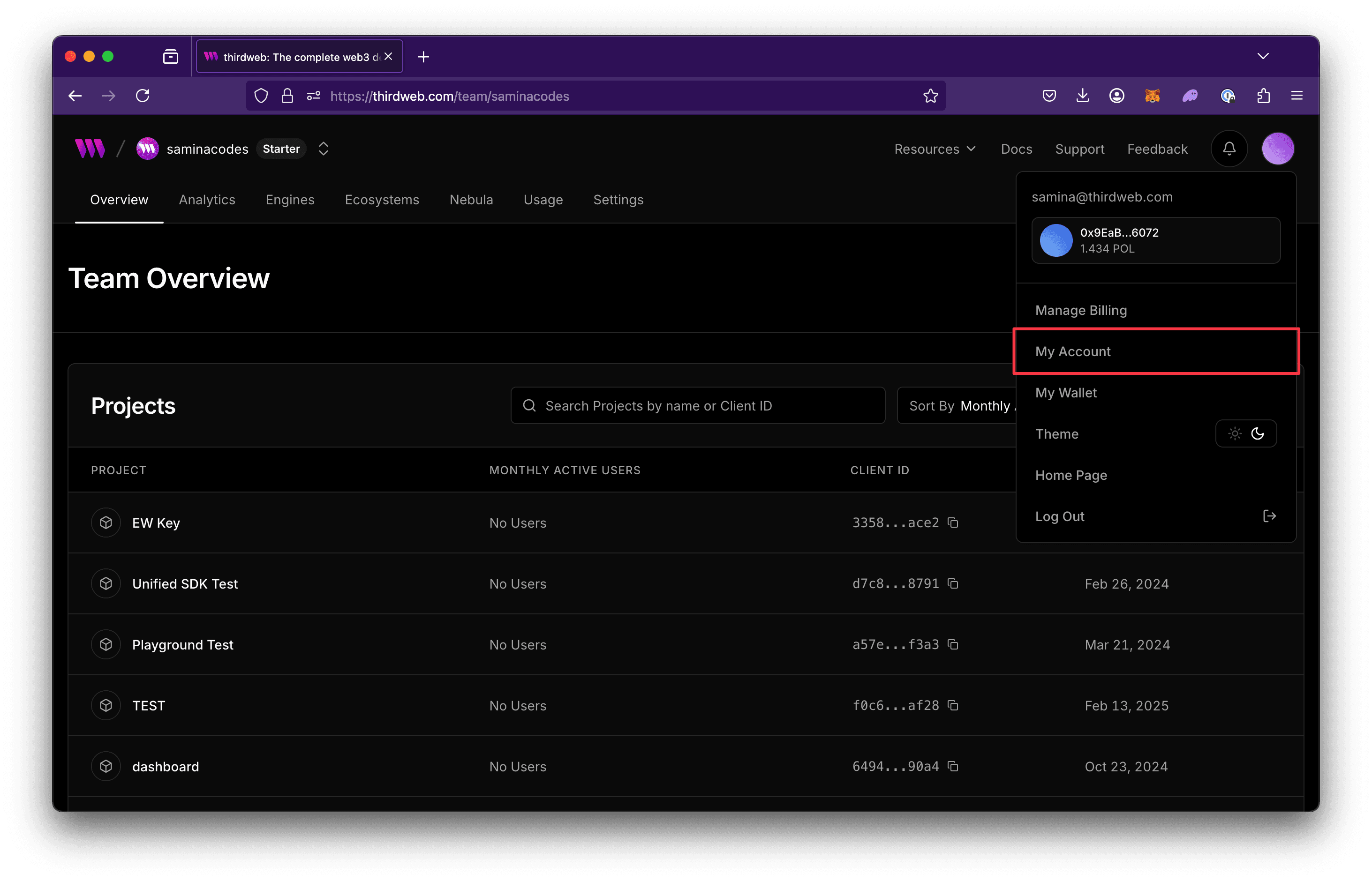 You will be prompted to confirm the link between the existing email and the new wallet. Upon email verification, you will be able to access all projects and billing details across both accounts.