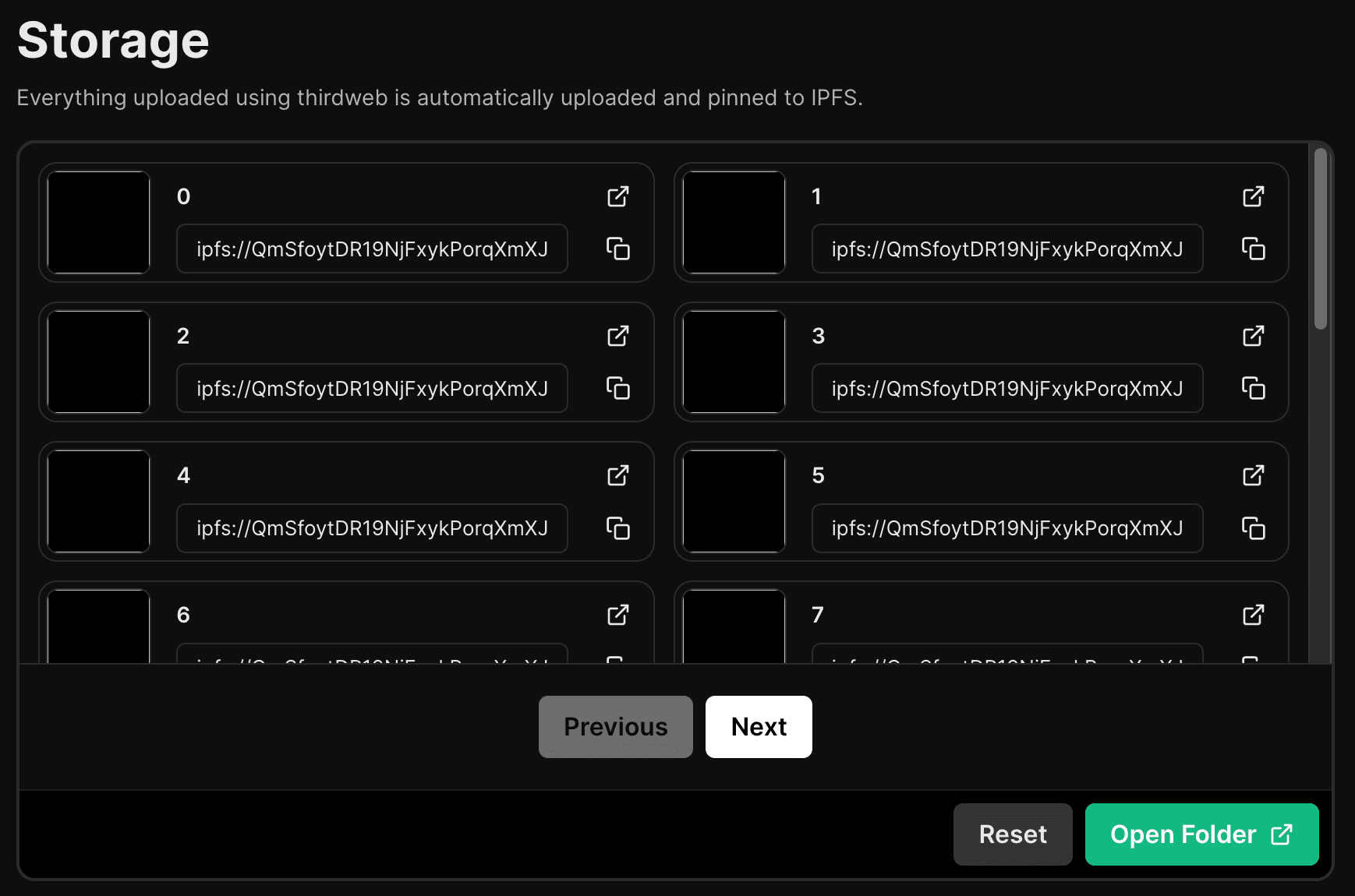 In this example, these first 10,000 items belong to the same batch. Since this is the first batch ever uploaded to the contract, the batch ID is 0 (the next batch ID will be 1, 2 and so on).